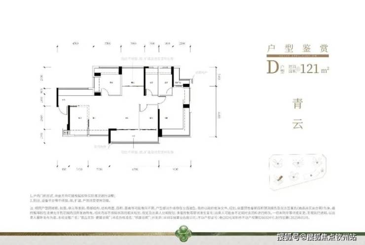 121㎡的4房2厅2卫,设计的是横厅南北通透格局,进门赠送约4.2㎡的前室入户,独门独户,客餐厅6.35米开间,4个卧室分别做到了主卧21.37㎡/次卧10.22㎡/次卧10.19㎡/次卧7.39㎡(实测面积,去掉墙体),主卧+1个次卧270°飘窗,客厅连接次卧出6.3米长大阳台,L型厨房,得房率约79.45%(不含赠送),阳台主朝西南或东南向。