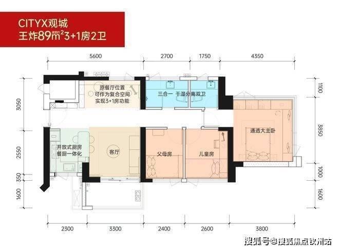 王炸户型 约89㎡3+1房两厅两卫(双娃家庭置业首选)
