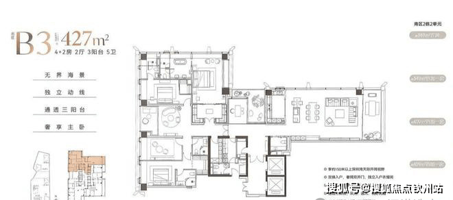 • 户型尺度:202㎡起纯大平层,无任何小户型。3.6米奢阔层高、2.4米超大阳台、高实用率,空间感碾压同级。