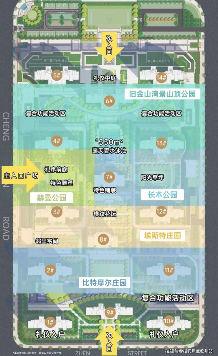 项目园林打造了5大艺术花园,划分为旧金山湾景山顶公园、赫曼公园、长木公园、埃斯特庄园、比特摩尔庄园,代表植种有小叶榄仁、高乔围合的草坪、乔木、大腹木棉等,整体植种丰富多样;功能上涵盖社区客厅、儿童泳池、综合赛场、颐养中心等配套,满足全家的社区生活需求。