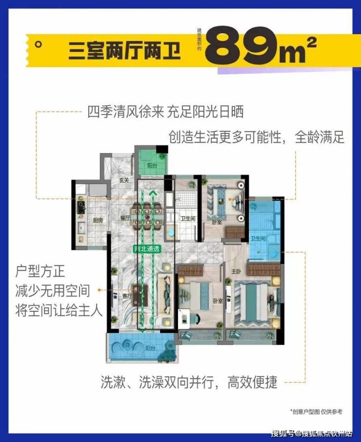 南北对流双阳台,悠享穿堂风