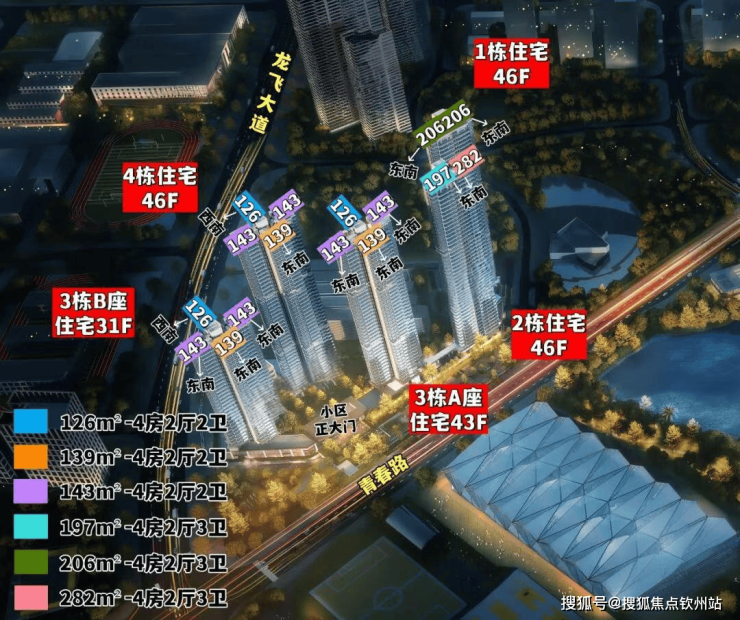 住宅面积段是面积有约120-140-190-280㎡户型,以通透户型为主,据悉最大的280㎡为顶奢设计,双全景舱结构,四个阳台。1栋和2栋为一层两户大平层,3-4栋为一层四户改善型住宅。