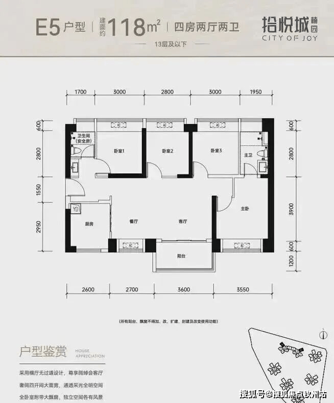 118㎡户型是五种四房户型里唯一的横厅,通透性肯定是没竖厅的好,但横厅的餐客厅空间感更强,实用性会更高一些,整体没啥大问题,主要看个人喜好,就市场受众来讲,竖厅的受众会更广泛一些。