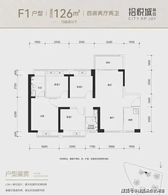其中115㎡与126㎡外形结构与内部功能间布局基本一致,126㎡户型可看作是115㎡户型的放大版,都是竖厅、动静分区的,居住舒适性、实用性、通透性、静溢性各方面都比较好。