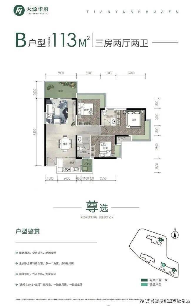 110平三房两卫,西南向,东北向都有:折后约921-1044万