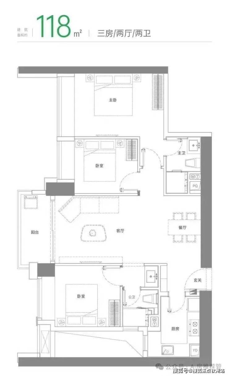卧室标配飘窗,引入丰沛阳光,全家尽情舒展餐客一体贯通阳台,打造舒适、宽敞的欢聚天地奢享主卧,独享衣帽间、私人卫浴,自我非凡领地