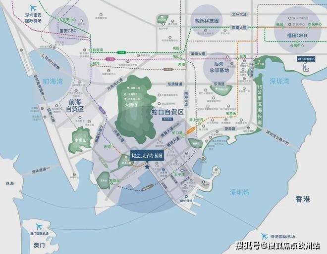 海:坐拥蛇口邮轮母港,已开通至香港国际机场、港澳码头、澳门氹仔等航线,旅游航线覆盖日本、越南等东亚、东南亚地区;陆:望海路(规划双层路)、微波山隧道(建设中)、东滨路等主干道环绕,路网发达;空:快速抵达深圳T3、香港、澳门三大国际机场;轨:地铁2号线蛇口港站、5号线赤湾站已通车,12号线太子湾站便捷直达,规划中的28号线进一步拓展出行版图,轻松构建全球商务生活圈。