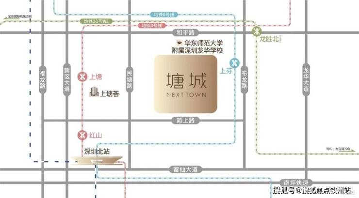 交通配套:距离地铁4号线龙胜站约500米、6号线元芬站约100米,2站到红山3站到深圳北站,6站到福田,享受红山和北站的配套资源,此外还有在建设中的深大城际线3站到机场。