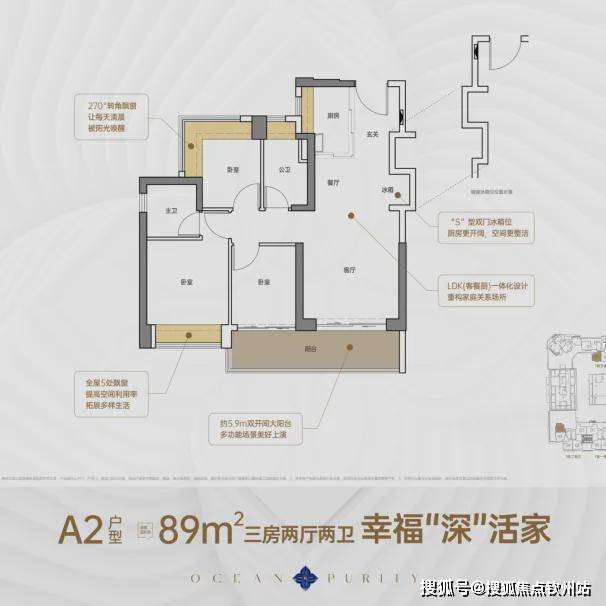 产品面积段:建面约89-128㎡3至4房