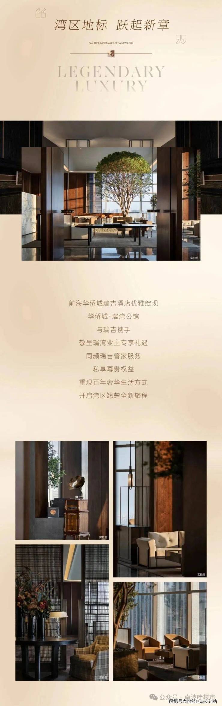 华侨城瑞湾府高层引入了百年奢华酒店品牌瑞吉酒店。瑞湾府的业主,可以乘坐专梯直达酒店。酒店还在220米处的高空,设置了深圳首个天际悬挑酒廊。