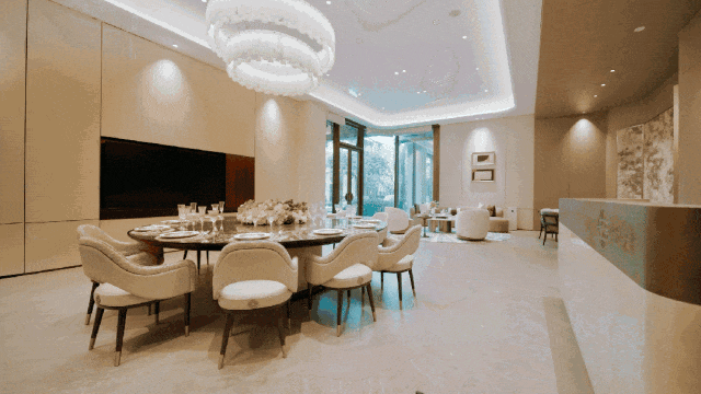 餐客厨一体化设计,实现约40㎡超尺度公区,打破空间的局限性,让烹饪、用餐、娱乐等功能融合,每个场景都能亲密互动。