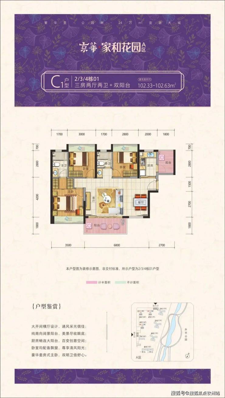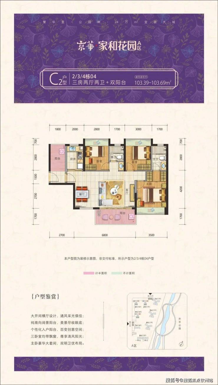 (2)100-103㎡三室两厅两卫:包含3+1房户型,空间布局合理,适合改善型家庭。