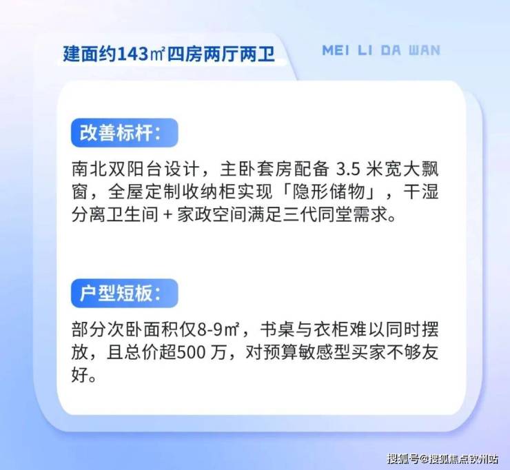户型设计领先:86㎡三房、143㎡四房等户型实用率超 85%,收纳系统贴心设计。
