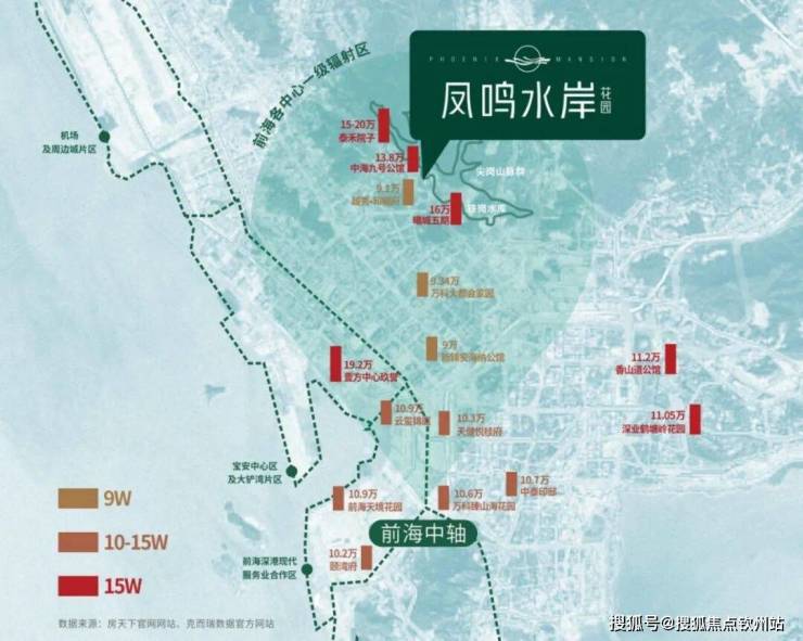 前海核心区就业人口约65万,宝中约40万,再加上腾讯科技岛的10万科技人才,共产生近115万高端居住需求。前海内的住宅仅能满足20%的需求,尖岗山成为前海豪宅居住新据点。