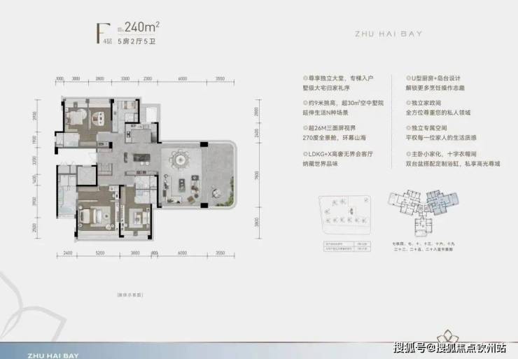 约240㎡270度环幕山海景观、9米挑高空中墅院