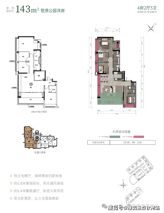 户型信息:主力户型为 88-143㎡的三至四房,涵盖高层和洋房产品。高层户型有 88㎡三房、91㎡四房、98㎡四房等,洋房户型有 129㎡四房、143㎡四房等。
