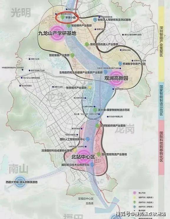 12大产业区观澜独占其9,重点发展5G、人工智能等高新技术产业,打造新一代数字经济总部基地。