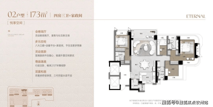 3.户型高使用率(>90%):新规设计下,91-173㎡主力户型配备“弹性方厅+环幕主卧+三面采光”,空间利用率远超周边项目平均水平。