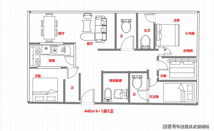 户型面积:107-447㎡平(2至4+1房)