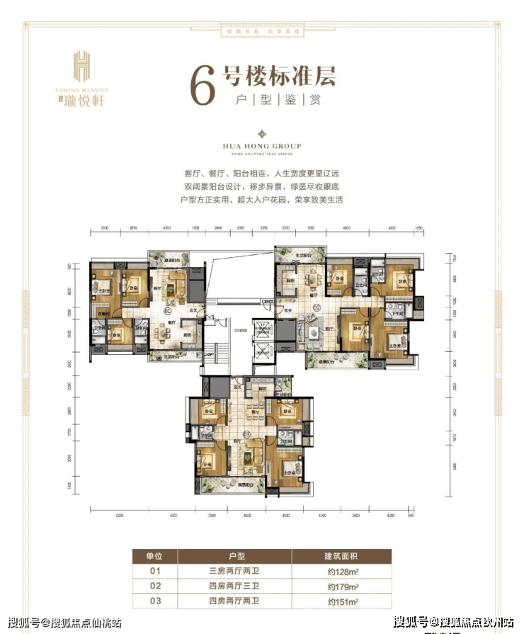 9栋两梯三户:140平3+1房,152平、177平四房