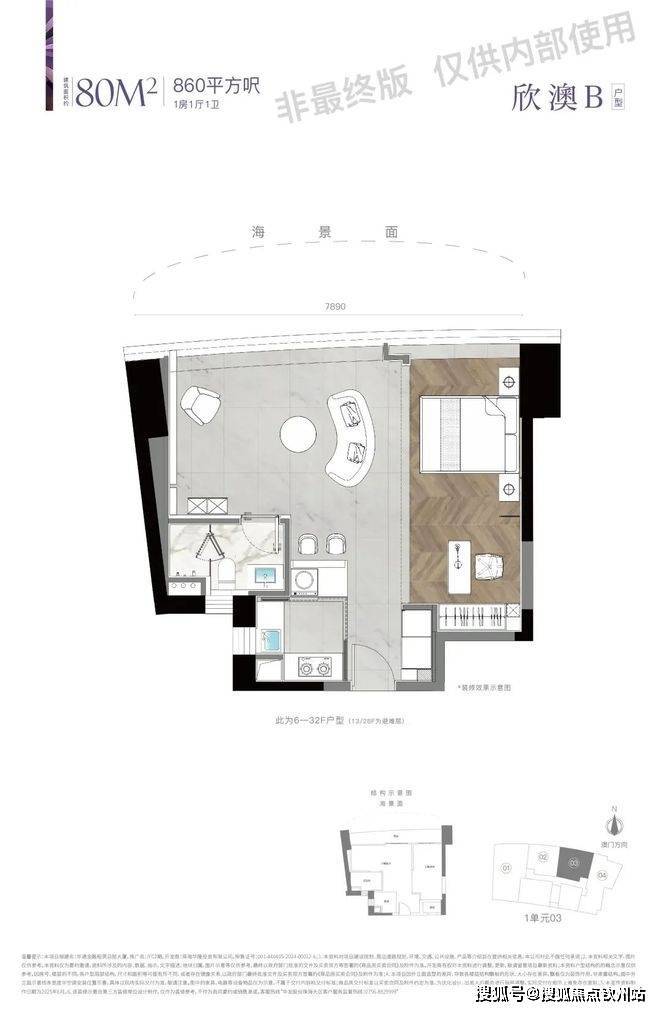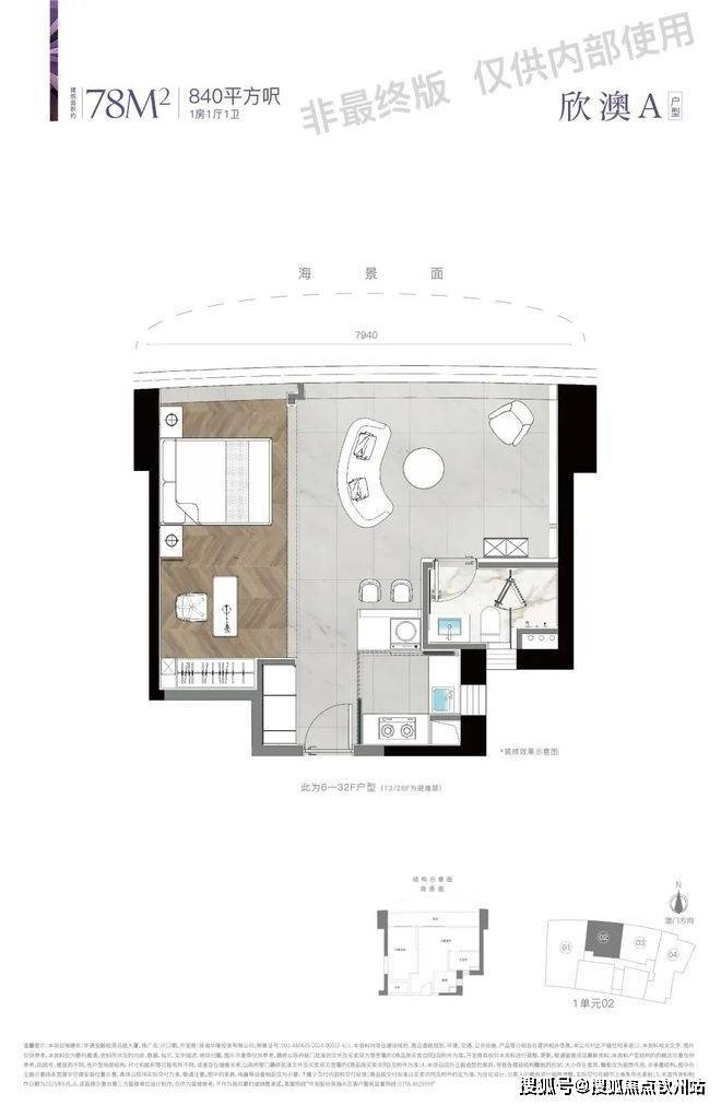 住宅面积段: 约78-80 ㎡、约128-135 ㎡两种面积产品;(层高 3.1 米,6-32 层,其中13、28 层为避难层);