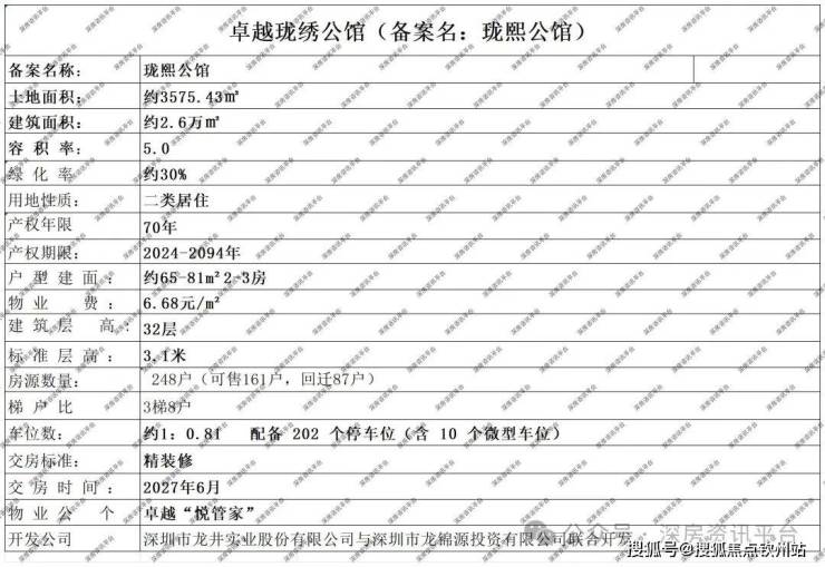 珑秀公馆,位于南山区南头街道中山园路与南坪快速交汇处北侧约150米,总占地面积3575㎡,总建筑面积约2.6万㎡,计容建筑面积约1.82万㎡,容积率5.11,绿化率30%,共由1栋总高32层的住宅组成,总规划248户,停车位199个。