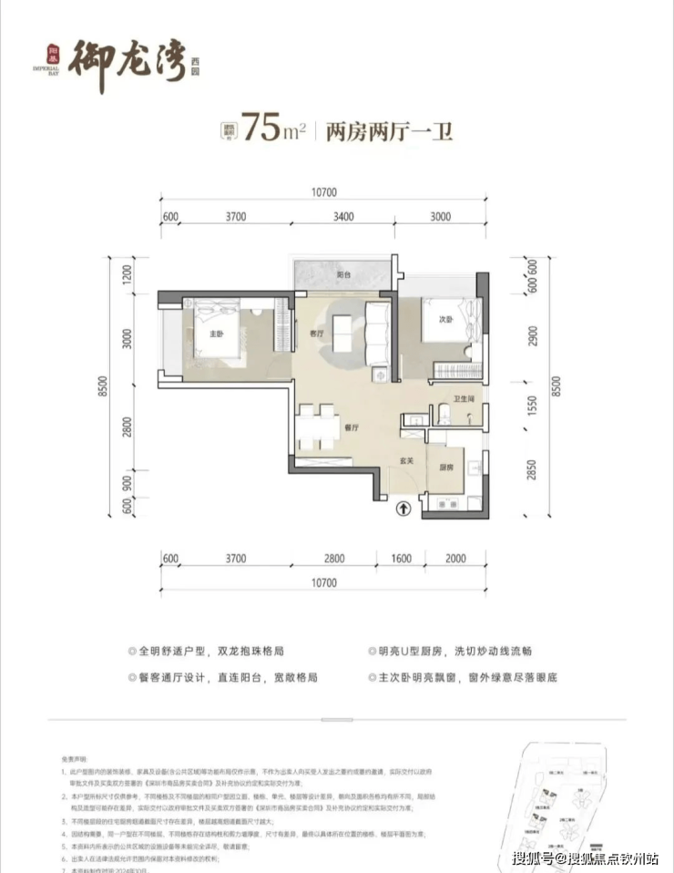 75㎡2房1卫,分布在1栋3/4单元01/08户型,设计的是竖厅稀缺的双龙抱珠格局,客厅开间3.4米,U型厨房,卫生间三段式分离设计!
