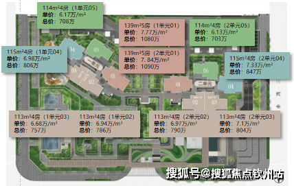 113㎡:2单元03(7.1万/㎡)>2单元02(6.97万/㎡)>1单元02(6.94万/㎡)>1单元03(6.68万/㎡);