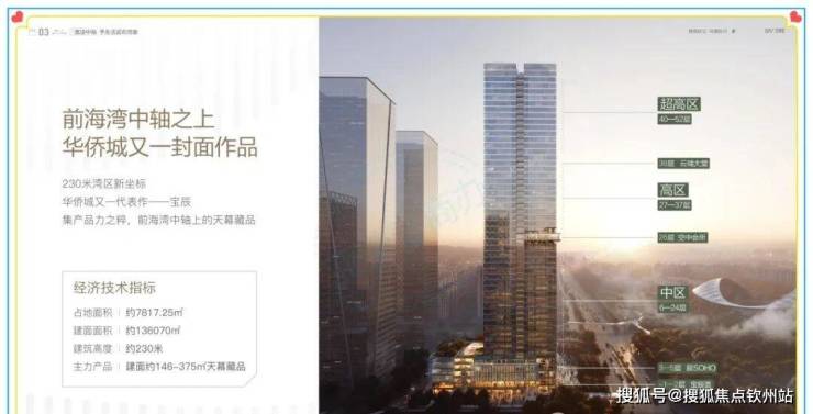 【建筑高度】230 米(宝中地标),共 52 层;