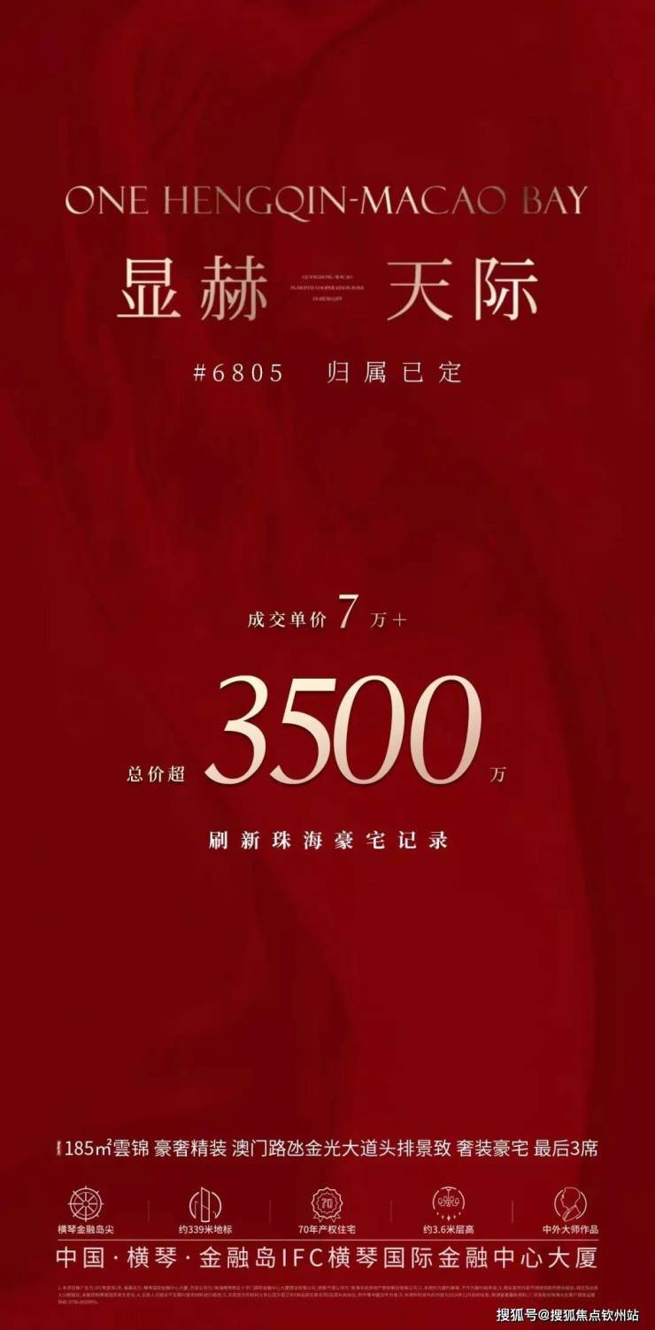IFC顶奢之作--IFC琴澳湾1号更是以最高单价7万+/㎡,最高单套总价3500万+成交,刷新珠海豪宅纪录!