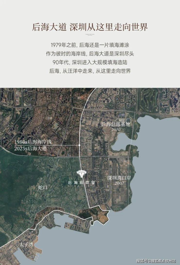 后海招商玺家园,位于深圳市南山区招商街道后海大道以西、工业七路以北,地处深圳湾-蛇口板块中点,左手"深圳源"(蛇口),右手"深圳湾",两大板块融合的配套组合,既能高端大气也能舒坦接地气。项目位于南山区填海区核心地带,占据粤港澳大湾区城市群的核心区位,东临深圳湾公园,西接后海总部基地,北靠人才公园,南望深圳湾海域,占据不可复制的地段资源。