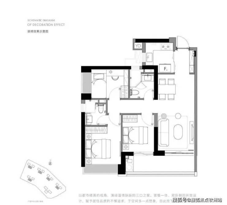 该户型是经典的“双龙抱珠”布局,深受传统购房者的喜爱,也是本批产品中房源数量最少的一个户型,比较稀缺。