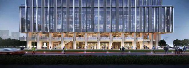 以“竹”和“笋”为意向,重铸笋岗新封面。外立面采用玻璃幕墙通过折线坚向构件隐喻竹子形态,高低错落的体量组合寓意着竹子簇拥生长的挺拔与活力。