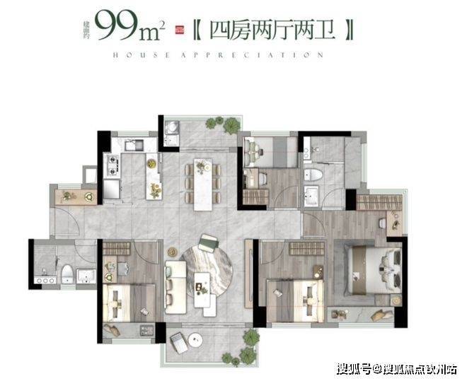 而建面约99㎡的户型,更是将正方强大的产品雕琢能力展现得淋漓尽致。