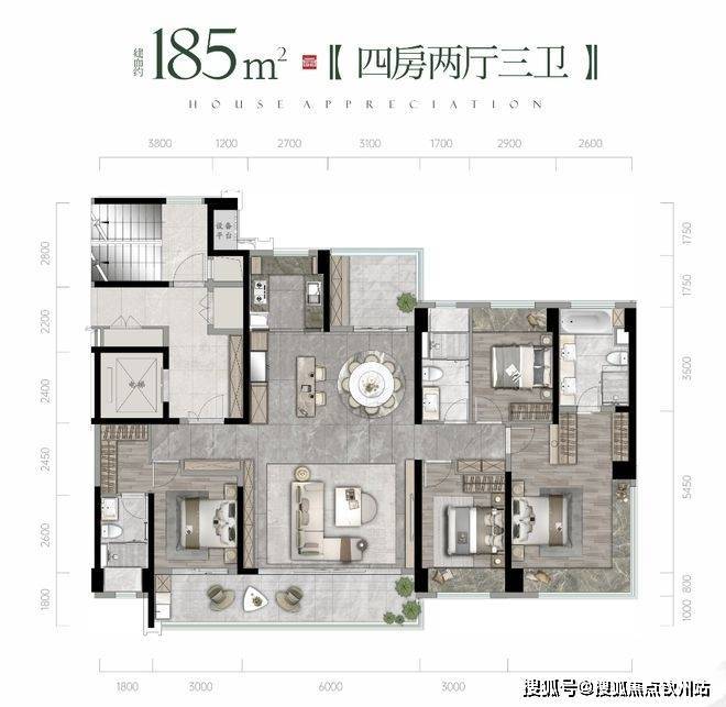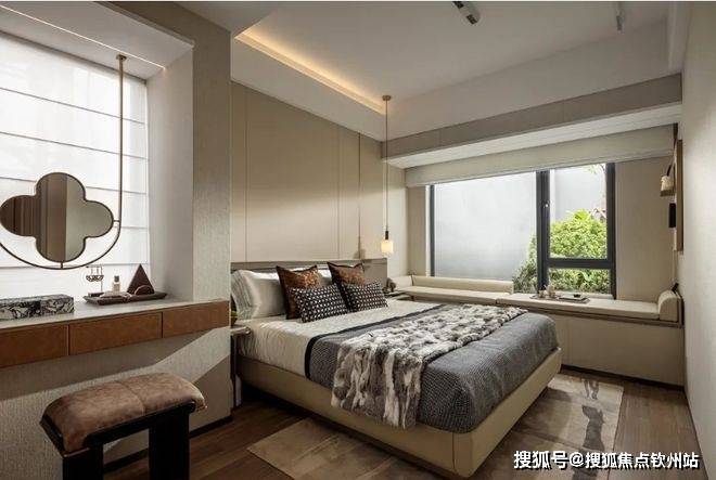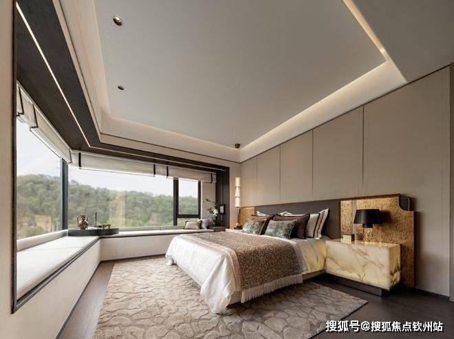 套房式主卧,私密舒适:主卧预留整面墙衣柜空间、独立卫浴,约3.5米的大飘窗让生活与清风阳光亲密无间,为居住者提供了一个私密、舒适、功能齐全的休息空间。