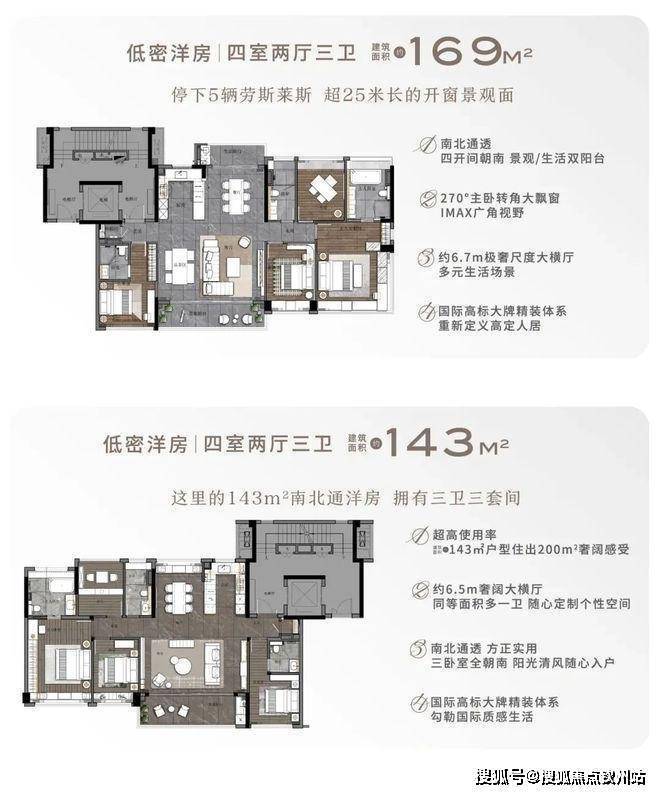 项目率先登场的是建面约113-169㎡奢装洋房/高层,看两个数据:“全系独立电梯”+“100%超高使用率”,你就知道,放眼珠海,都是创领户型。