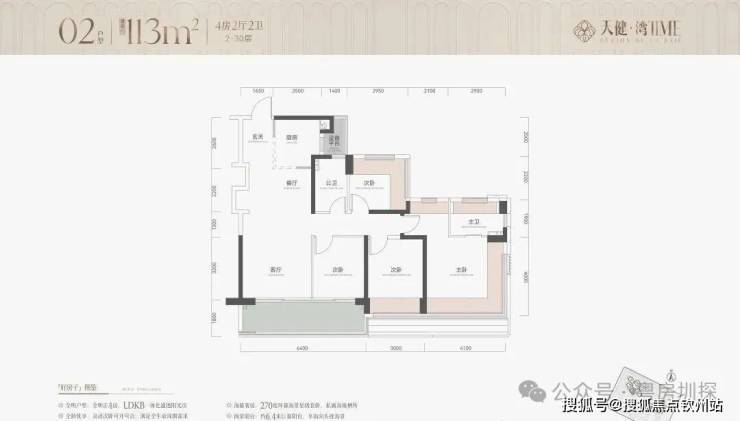 划建设2栋100米内的30层住宅,采用2梯4户设计共推出约290套房源,户型涵盖113㎡四房与139㎡五房,其中,113㎡四房为绝对主力户型。户型朝向以朝南、西南为主,仅两套房源朝东北方向,可直面金众区域。