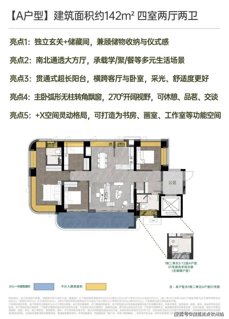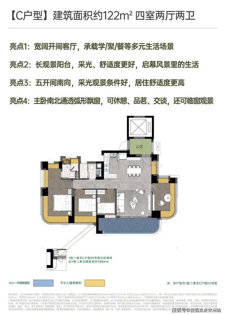 建面约142㎡南北方厅 阔景四房;