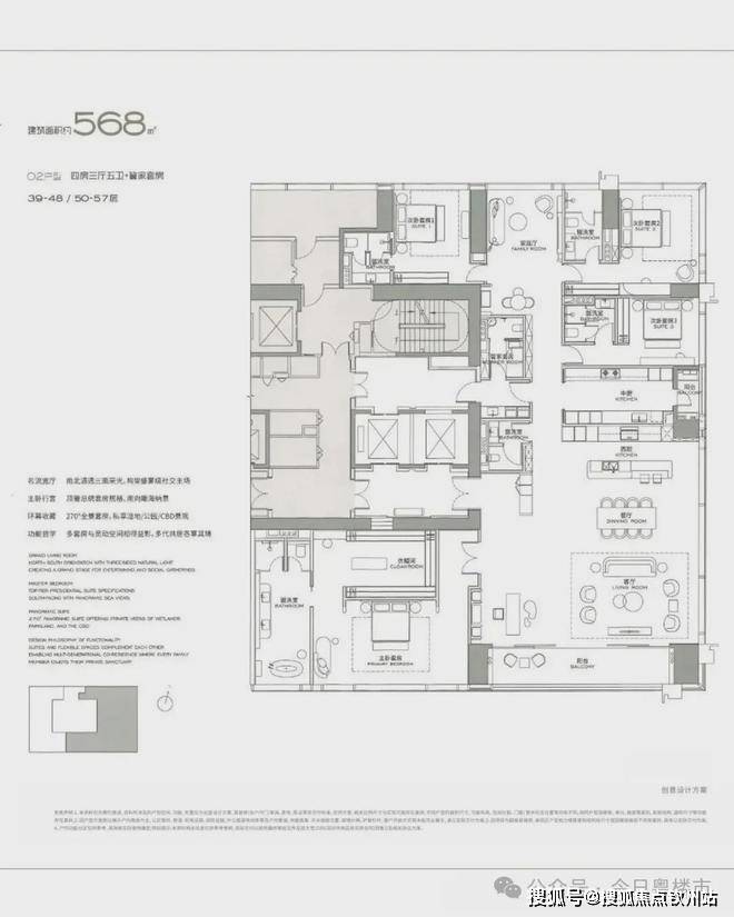3栋高区39-57F,三面采光,客厅及主卧朝南看海,全套房设计外加家庭厅,该有的功能和尺度都给到了。