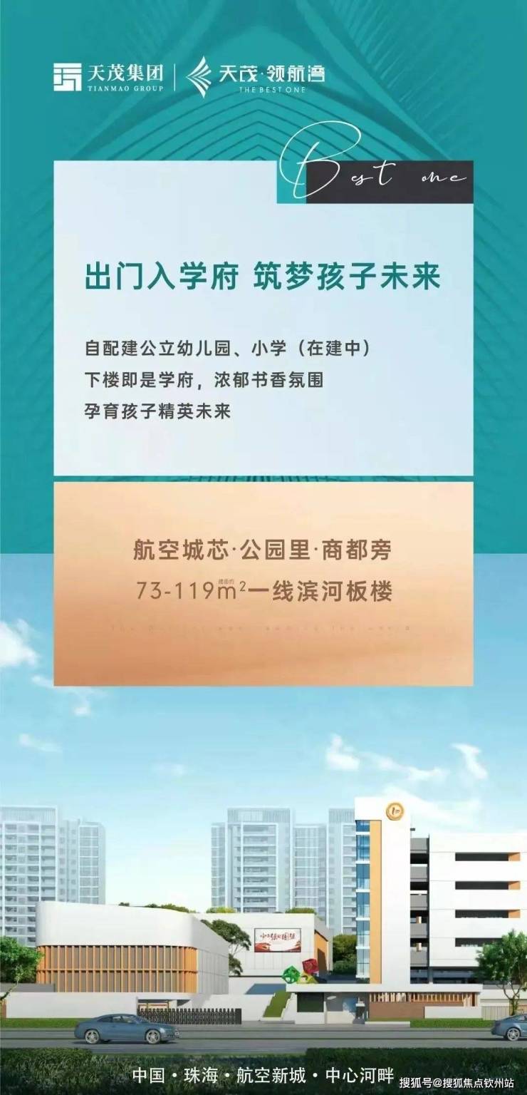 天茂集团,以前瞻性眼光,择址珠海航空新城,打造前公园,后商都,自配建公立幼儿园、小学等满配标杆之作——天茂·领航湾。