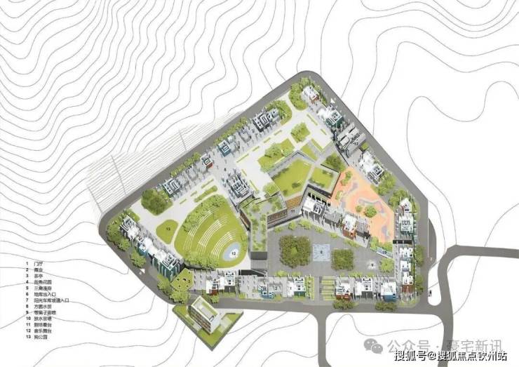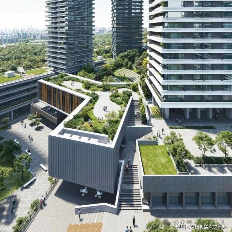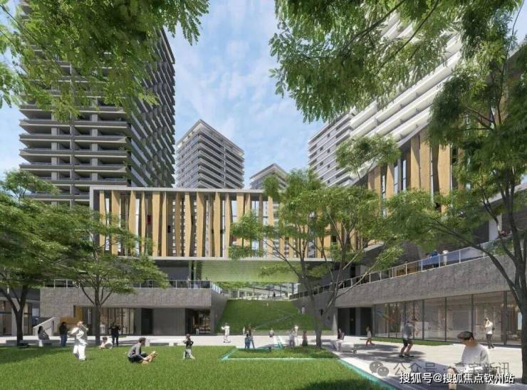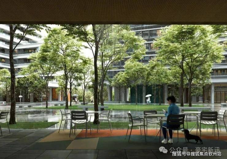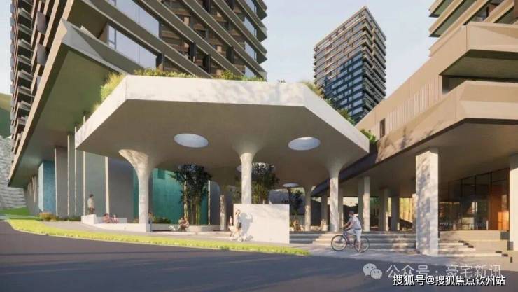 从架空层望向水韵广场效果图