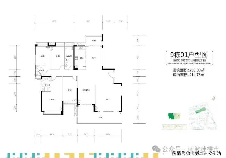 9栋,两梯两户,建面约255-259㎡五房大平层户型