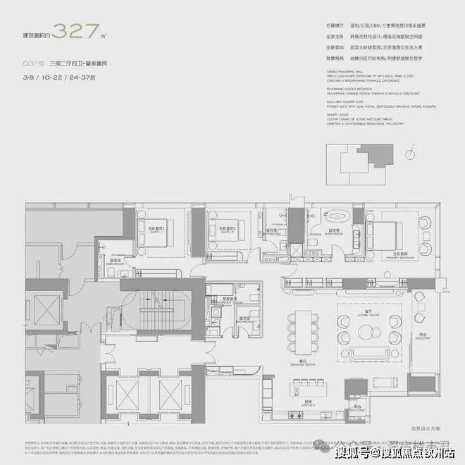 【327平03户型 三房二厅四卫+管家套房】