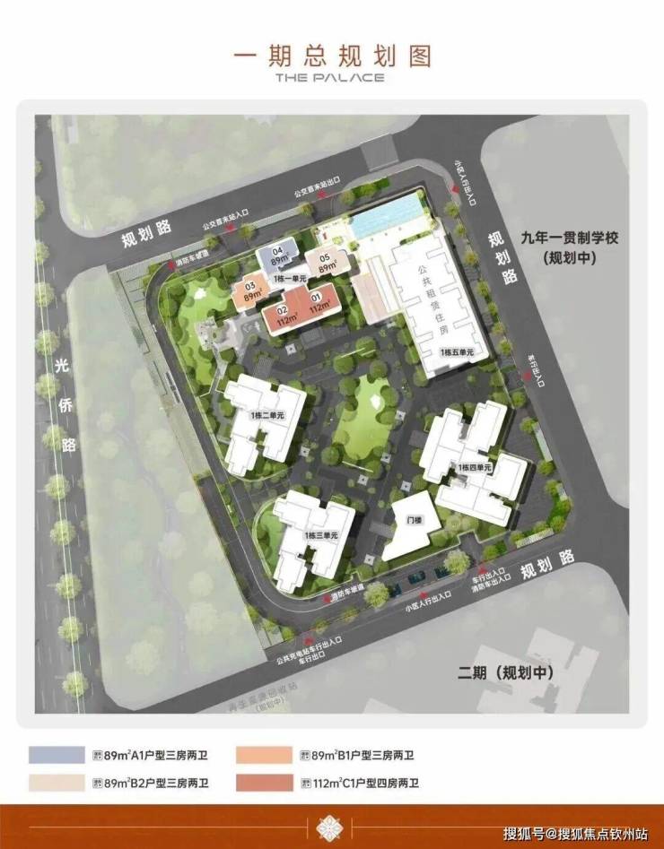 推出项目1栋1单元,2T5户,89㎡竖厅三房两卫,南北通透,带1.8m宽阳台;112㎡四房两卫。户型图和平面图已发布。异地美学创意空间(样板房)已开放。
