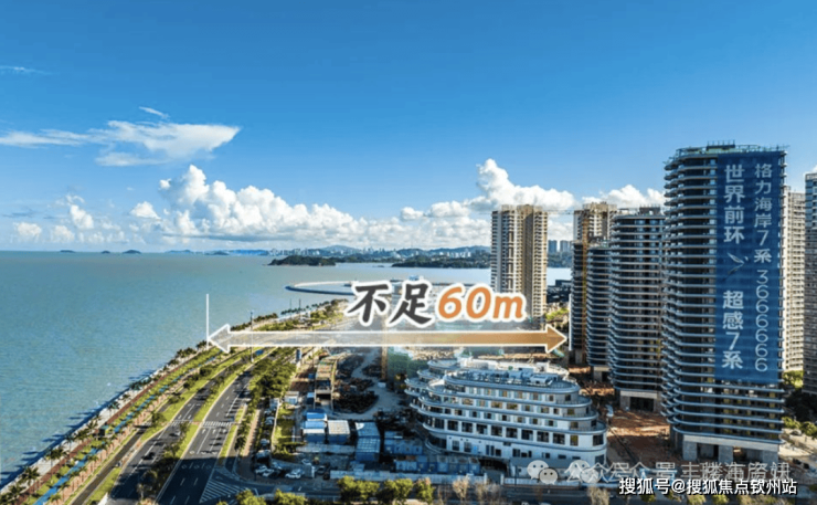 如图所示,项目距离海岸线不足60米(来源:百度测距),视野一线无遮挡。