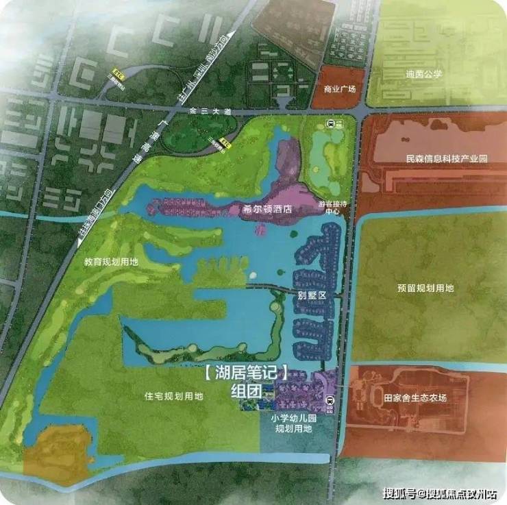 整个项目约有3500亩,云集湖泊、农场、五星级希尔顿酒店、学校、产业园、商业中心等,集旅游、产业、文化和人居等于一体的大城。