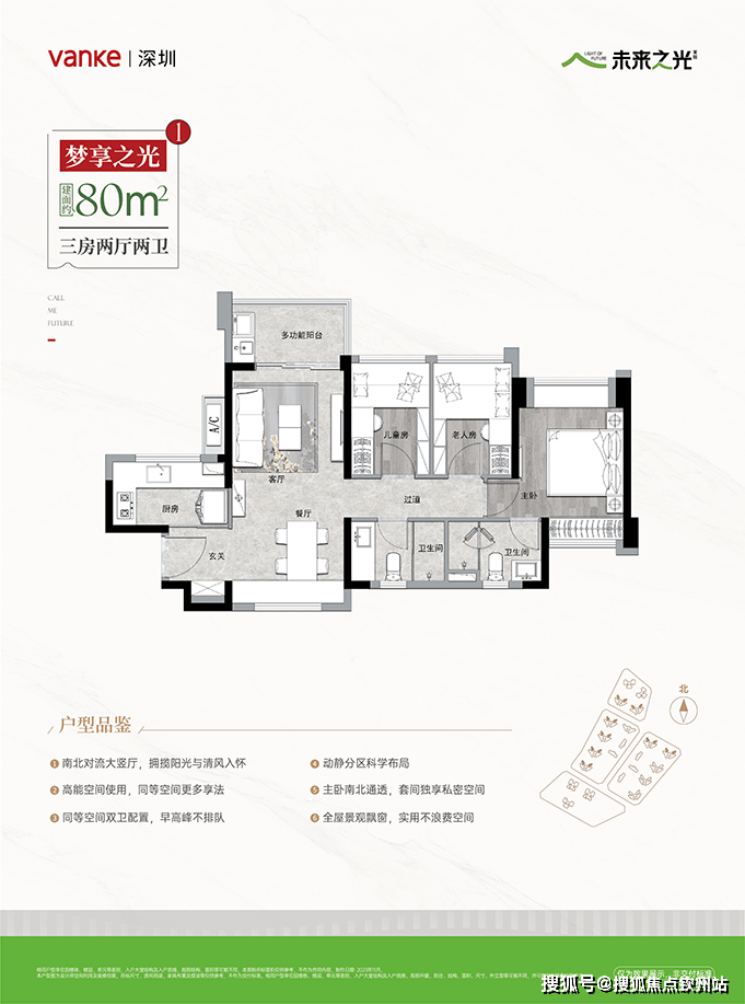南北对流大竖厅,全明格局。主卧南北通透,独享私密空间。全屋景观飘窗,得房率约90%。同等空间双卫配置,早高峰不排队。