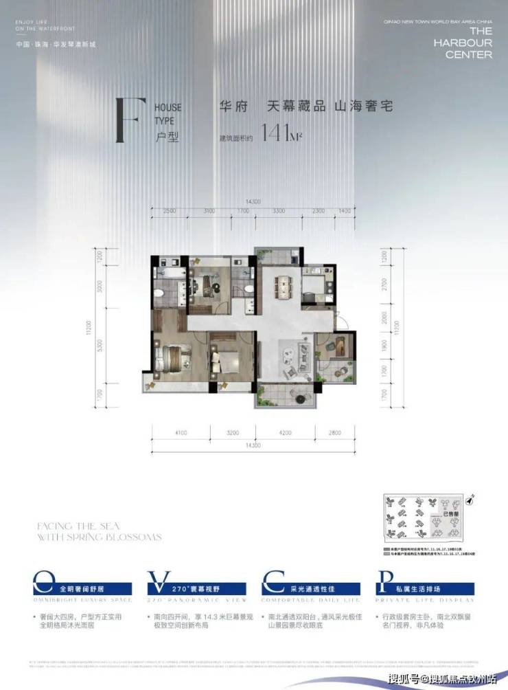 在售户型143㎡4室2厅1厨2卫,总价358万起;155㎡3室2厅1厨3卫,总价388万起。