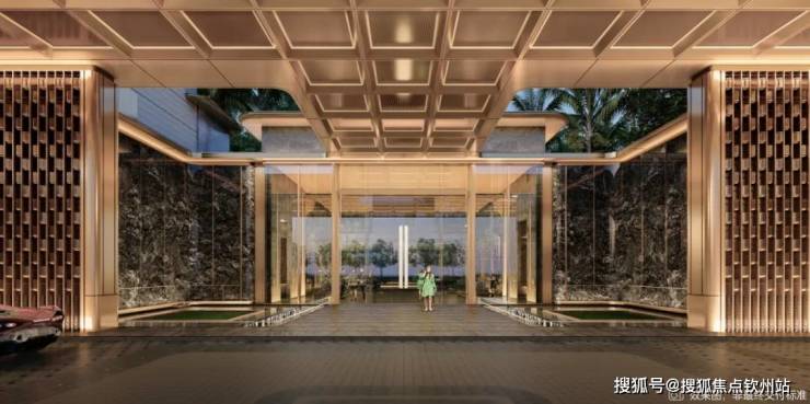 ①酒店式环岛门庭:无雨落客,仪式感归家门庭,约70米超长奢阔延展面,约7米高门阙,气度非凡仪式感满满