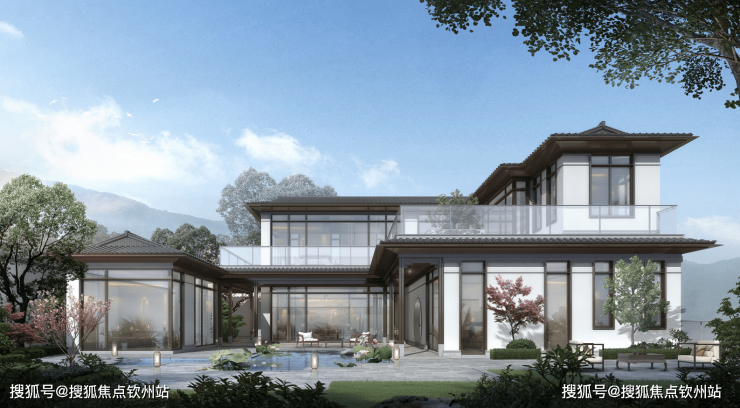于传统中式上,考究现代化生活习惯与岭南气候特征,增加大量玻璃系统窗、挑檐面积、灰空间面积,防晒遮阳,中式美观与人居实用并举,引领当代生活方式。